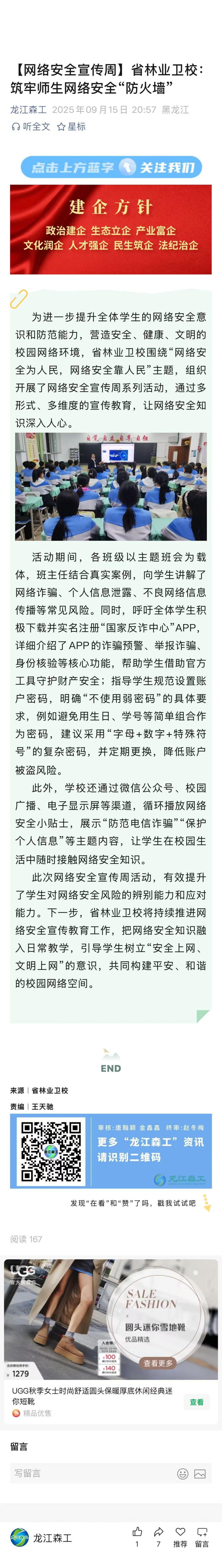【龙江森工】【网络安全宣传周】省林业卫校:筑牢师生网络安全“防火墙”
