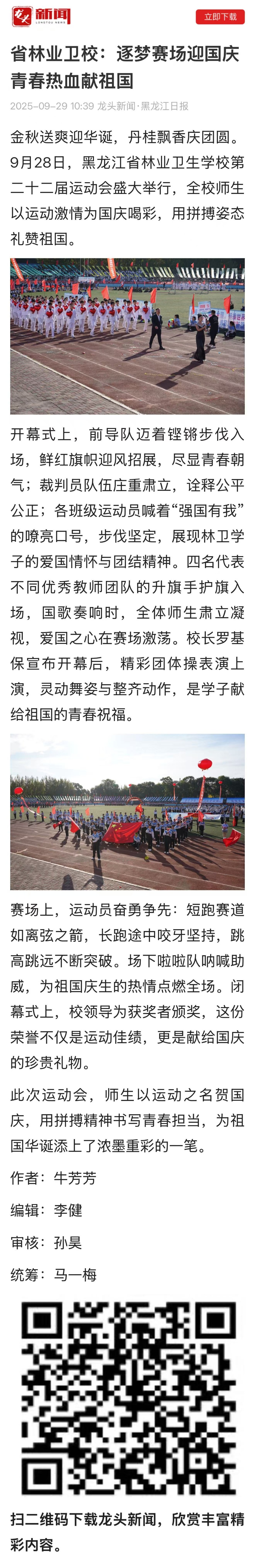 【龙头新闻】省林业卫校:逐梦赛场迎国庆 青春热血献祖国