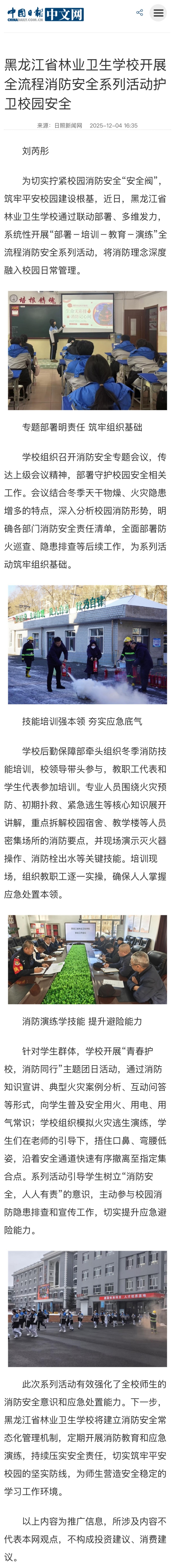 【中国日报】黑龙江省林业卫生学校开展全流程消防安全系列活动护卫校园安全
