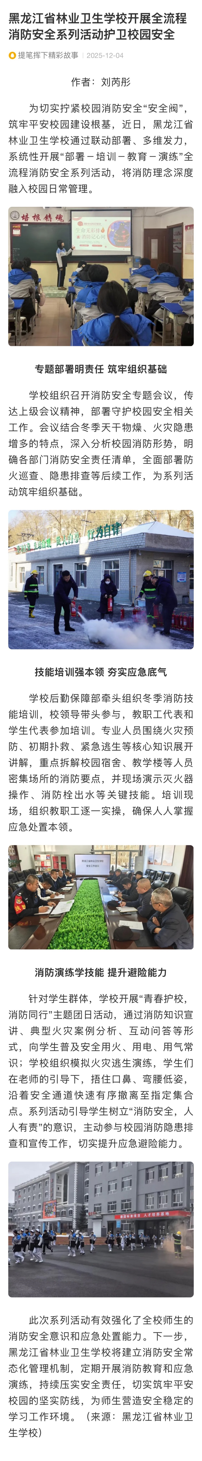 【腾讯】黑龙江省林业卫生学校开展全流程消防安全系列活动护卫校园安全