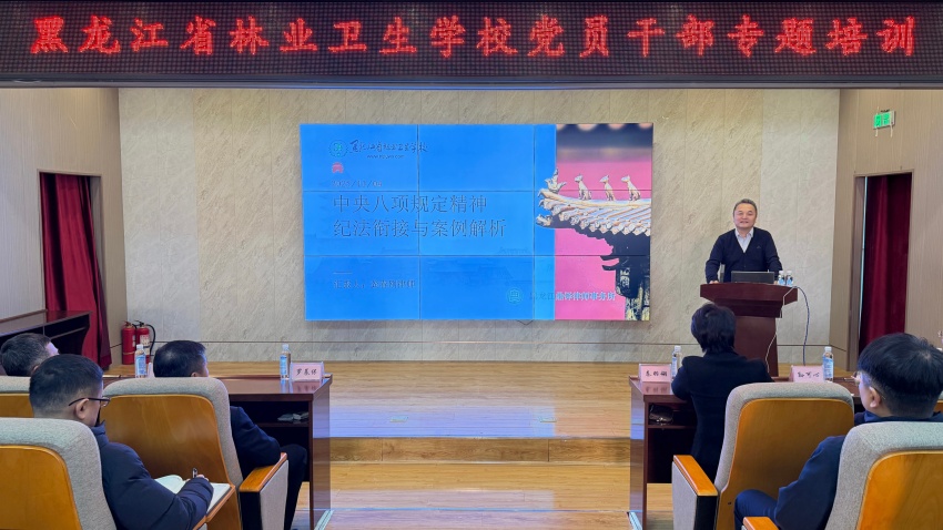 为深入贯彻落实全面从严治党要求,推动中央八项规定精神在校园落地生根,强化党员干部纪法意识与责任担当,推动作风建设走深走实,11月14日,学校党委举办党员干部专题培训。学校领导班子成员、全体党员、中层干部参加培训。