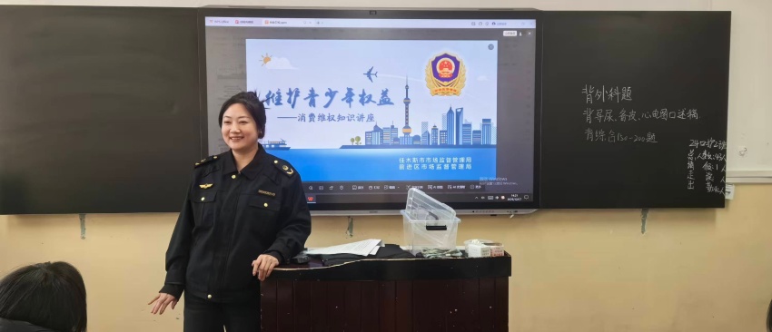 12月17日,佳木斯市前进区市场监督管理局走进我校,开展“维护青少年权益——消费维权知识宣传”活动。