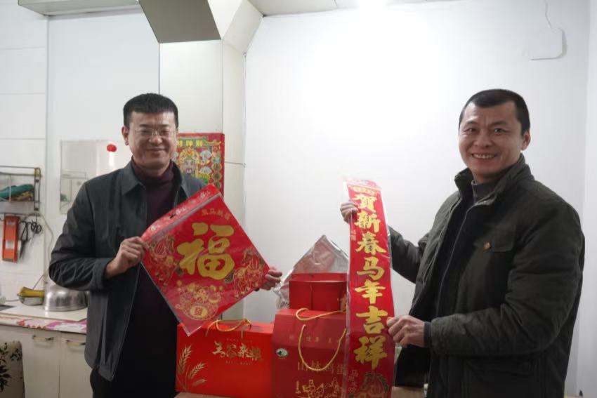 腊梅吐蕊迎新春,深情慰问暖人心。在2026年农历马年春节即将来临之际,为切实把学校的关怀与温暖送到每一位困难职工心坎上,近日,校领导班子成员分组带队,带着精心准备的慰问品、寓意吉祥的新春对联,先后走访慰问了多位困难职工家庭,与职工及其家属促膝长谈,倾听心声、传递关爱,为他们送上新春的美好祝福。