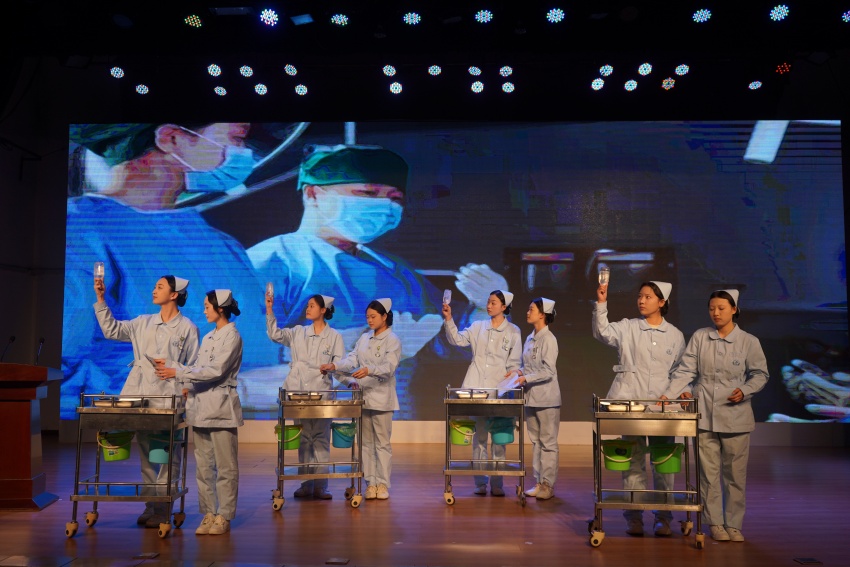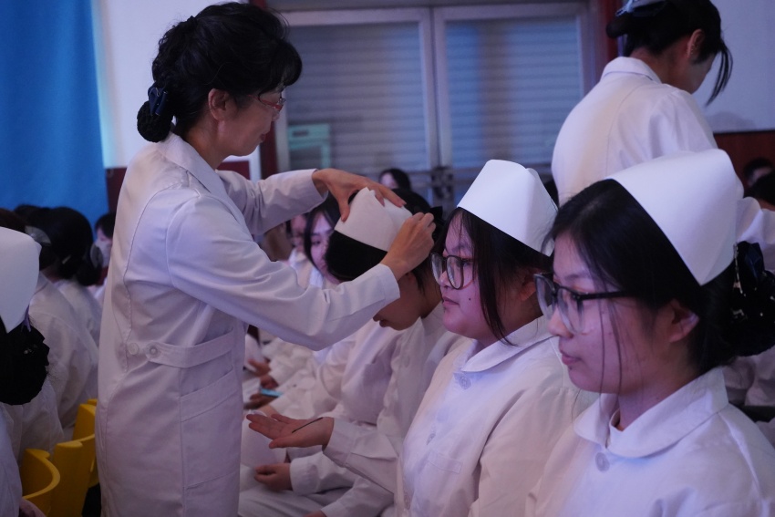 白衣执甲尽显天使风采,同学们带来专业技能展示——《天使风采》。标准护士礼仪、规范心肺复苏操作、专业康复操展演依次呈现,娴熟严谨的操作、昂扬端庄的风貌,充分展现了林卫学子扎实的医护专业素养与新时代白衣天使昂扬向上的精神风貌。庄严神圣的授帽仪式温情上演。一顶顶洁白燕帽,承载医者使命担当,传承守护生命初心,学子们接过白衣荣光,扛起医者责任,以仁心笃行漫漫前路。优秀毕业生寄语视频温暖上线,往届学长学姐隔空送上真挚祝福与成长叮嘱,以榜样力量指引新一届毕业生不忘初心、踏实前行。朝夕相伴的班主任们深情寄语,叮嘱学子常怀感恩、笃行不怠,带着母校与师长的牵挂奔赴人生山海。