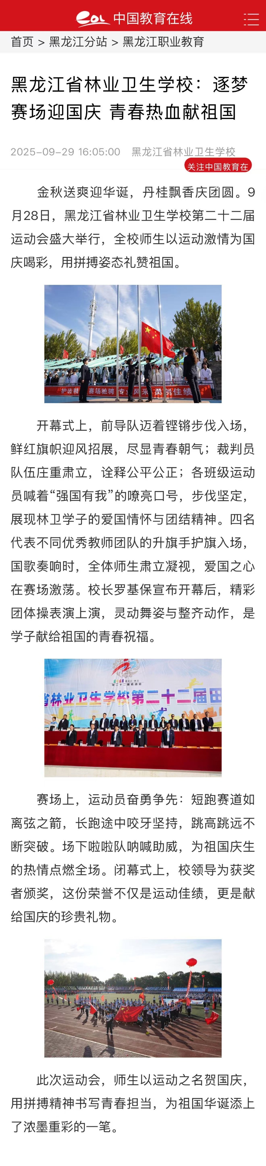 【中国教育在线】黑龙江省林业卫生学校:逐梦赛场迎国庆 青春热血献祖国