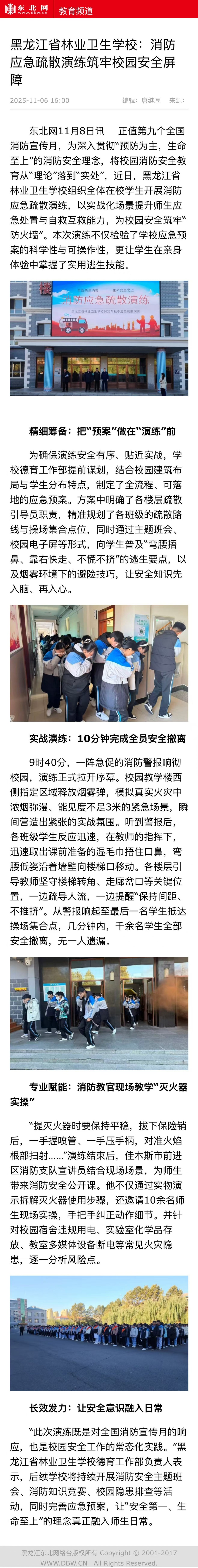 【东北网】黑龙江省林业卫生学校:消防应急疏散演练筑牢校园安全屏障