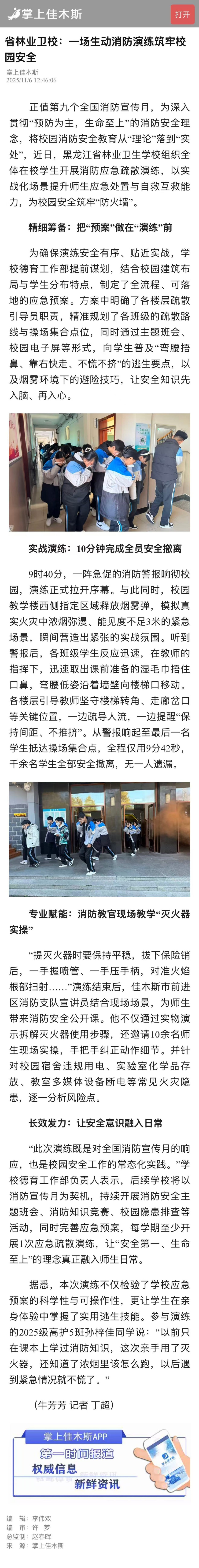 【掌上佳木斯】省林业卫校:一场生动消防演练筑牢校园安全