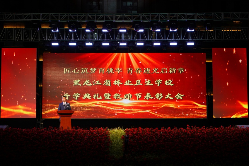 金秋送爽,硕果飘香。9月8日晚,黑龙江省林业卫生学校以“匠心筑梦育桃李 青春逐光启新章”为主题,隆重举行开学典礼暨教师节表彰大会。全校师生欢聚一堂,共同庆祝第41个教师节,并迎接2025级新同学的到来。