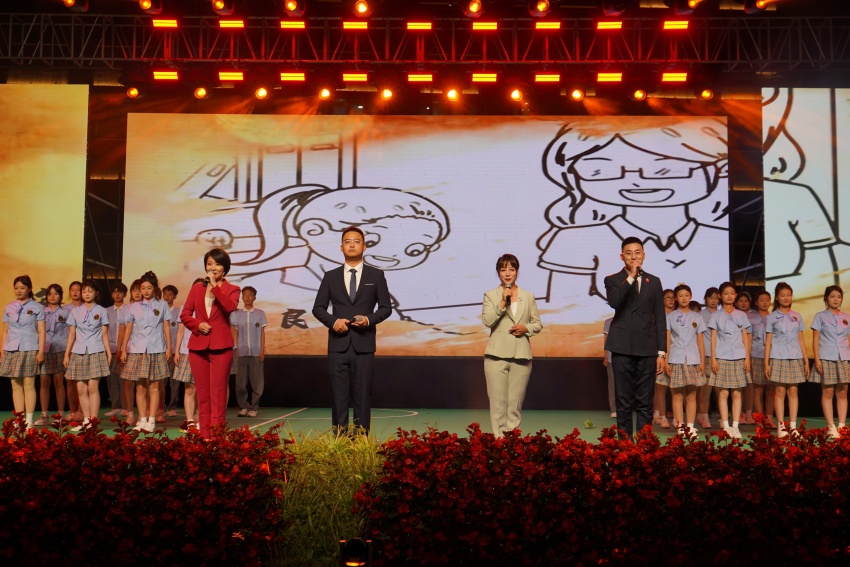 在特别节目和歌曲《裹着心的光》之后,现场举行了“感恩有你·幸运发声”抽奖互动环节,气氛热烈而温馨。随后,教师代表朗诵《我们是教师》,深情表达了教师的责任与荣光。