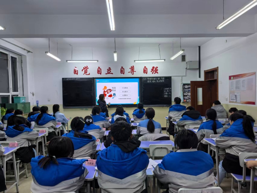 “建造友善和谐校园,拒绝校园暴力”主题班会聚焦友善文化培育,通过情景模拟、友善故事分享、小组互助讨论等互动环节,让学生换位思考校园暴力受害者的困境,领悟“医者仁心”与友善相处的内在关联。学生们共同探讨构建和谐同学关系的方法,承诺主动关爱他人、拒绝欺凌行为,以学生素养践行文明准则,争做校园友善文化的传播者与践行者。
