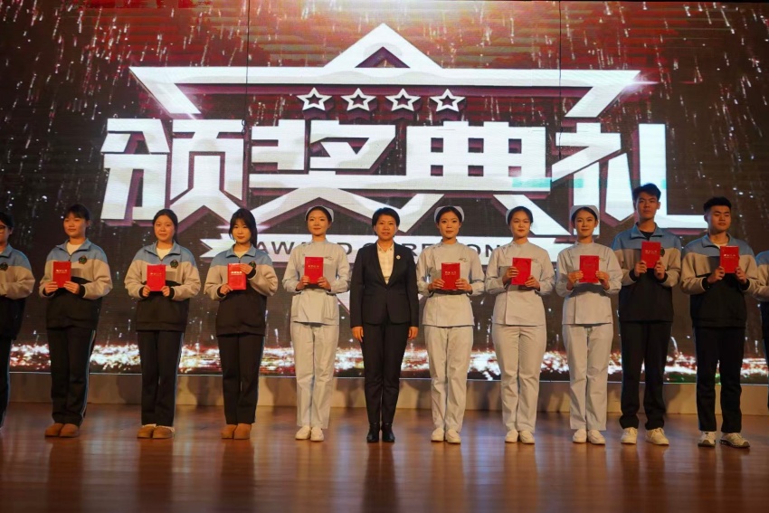 在2025年世界职业院校技能大赛总决赛的舞台上,我校师生在康复治疗与护理、健康养老与婴幼儿托育赛道中,斩获 “一金两铜” 的辉煌成绩,为学校赢得了世界级的荣誉。校领导为获奖选手和指导教师颁奖。