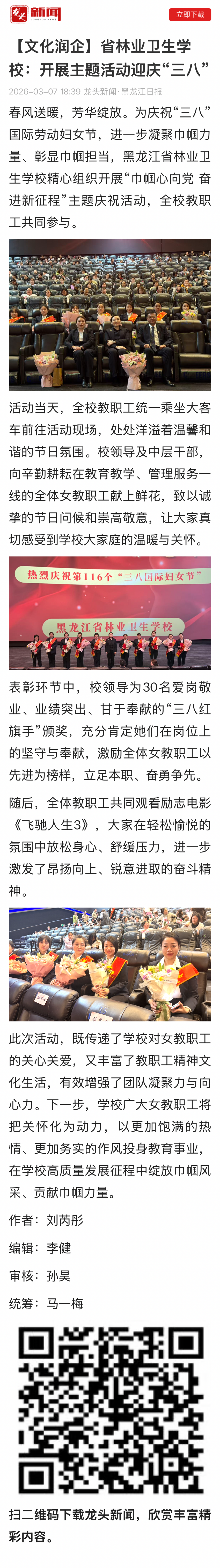 【今日头条】黑龙江省林业卫生学校开展“三八”国际劳动