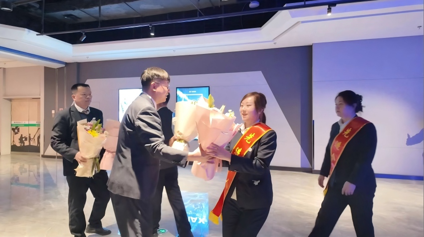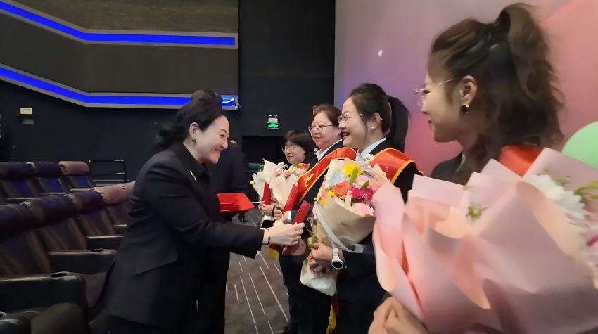 在表彰环节,党委副书记孙可心、副校长刘显峰、汪婧为爱岗敬业、业绩突出、甘于奉献的30名“三八红旗手”颁发荣誉证书,充分肯定她们在岗位上展现出的巾帼风采与担当精神。随后,校领导带领中层男领导干部向所有女教职工致以诚挚的节日问候和美好祝愿。