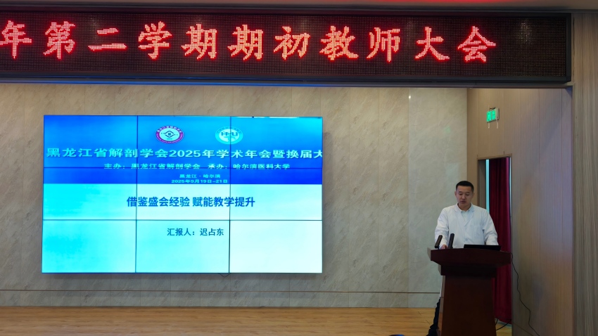 2月26日下午,迟占东老师就黑龙江省解剖学会2025年学术年会的内容作总结汇报。本次年会聚焦AI赋能解剖教学等前沿方向开展研讨,同步举办了教学竞赛,我校教师在中职组斩获多个奖项,充分展现了扎实的教学功底。