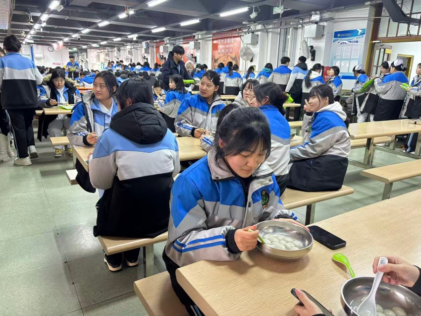 座谈会后,食堂工作人员为学生们精心准备了香甜软糯的汤圆。当一碗碗热气腾腾的汤圆送到孩子们手中时,瞬间驱散了异乡的寒意,也拉近了彼此心与心的距离。孩子们品尝着软糯香甜的汤圆,脸上洋溢着幸福的笑容。学生们纷纷表示在林卫也找到了家的温暖。